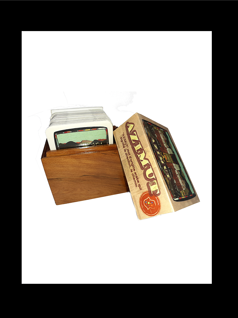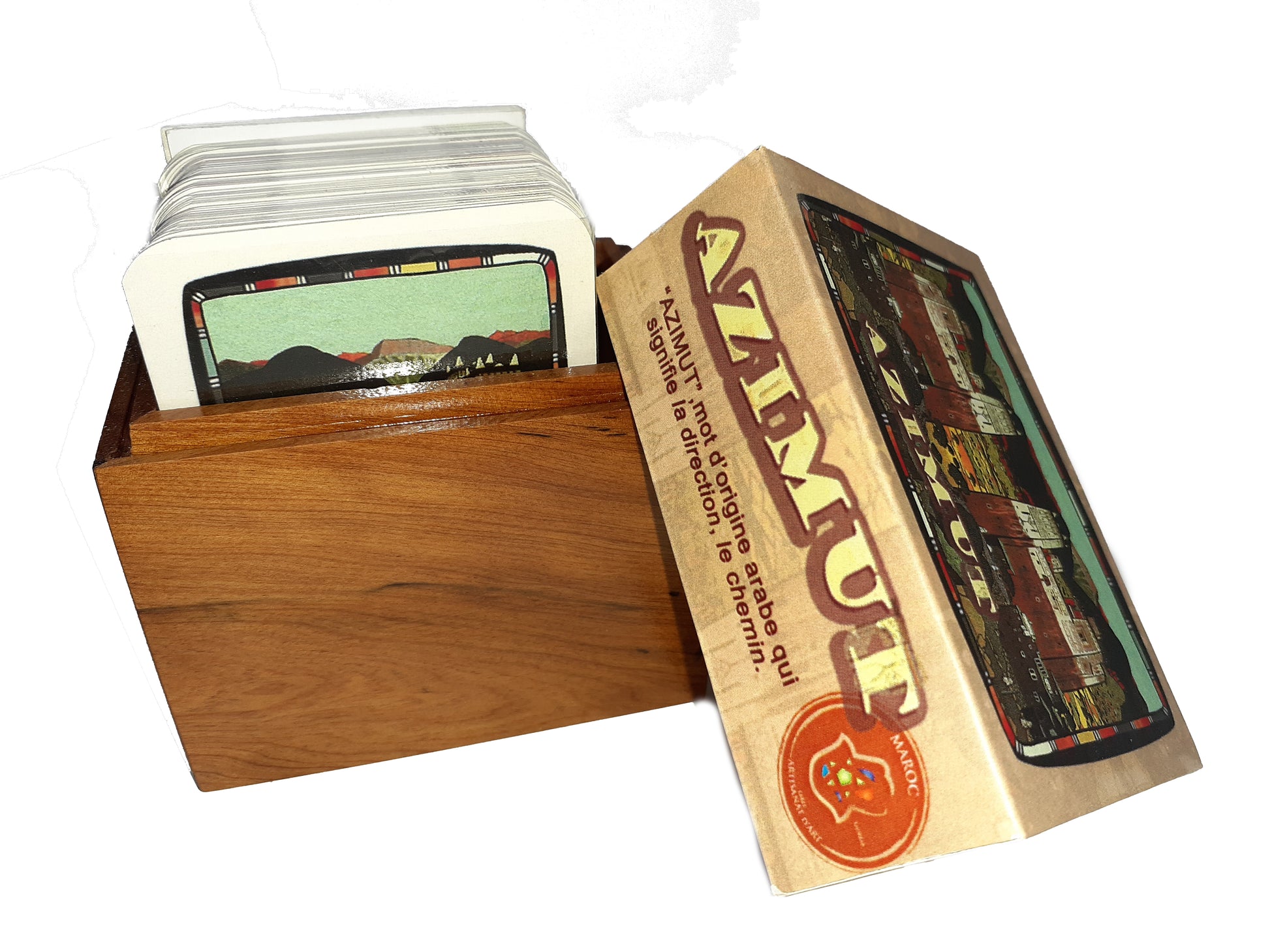 « Azimut » provient d'un mot arabe qui signifie la direction ou le chemin. Azimut est un jeu de cartes, pour adolescents et adultes, qui propose donc un chemin à parcourir en 10 étapes. C'est une sorte de rami élaboré aux règles simples et astucieuses.