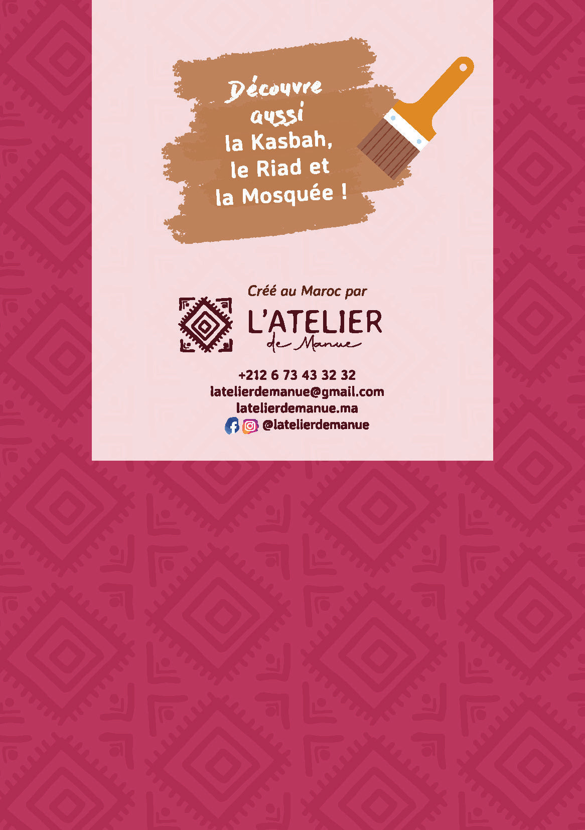 Les Jeux de l’Atelier de Manue sont uniques au Maroc. Des artistes et des artisans contribuent, chacun à leur manière avec leur style et leur vision propre, à enraciner les produits dans une culture et à donner une vraie identité à chaque jeu. Plus qu’un jeu, le « Do It Yourself » permet aux petits comme aux grands d’exprimer leur créativité en réalisant eux-mêmes des objets ludiques qu’ils peuvent personnaliser selon leur inspiration. Nos box sont disponibles en version Kebir ou mini. Chaque boite contient les pièces à assembler, les outils nécessaires et le plan de montage ou la notice technique. Les puzzles 3D Kasbahs, dinosaures ou animaux du Maroc. Les box techniques. Des techniques à découvrir en s’amusant, celle du henné ou des tampons-mousse à appliquer sur toutes sortes de support.